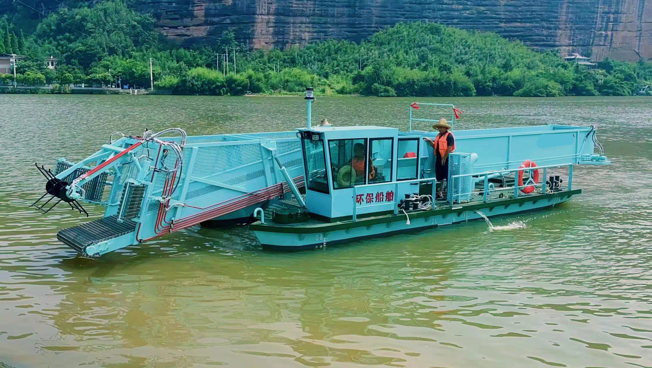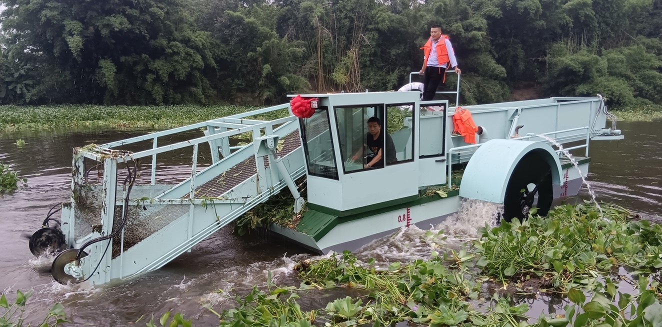廣西玉林九洲江管委會(huì)購買的DFSHL110型全自動(dòng)水葫蘆打撈船